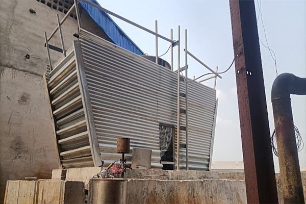 In counter flow cooling towers air enters from the bottom from all 4 sides and water fall from the top through the fill to give a cooling effect.We supply counter flow cooling towers both in HDG Steel structure and pultruted FRP structure with direct driven fan.